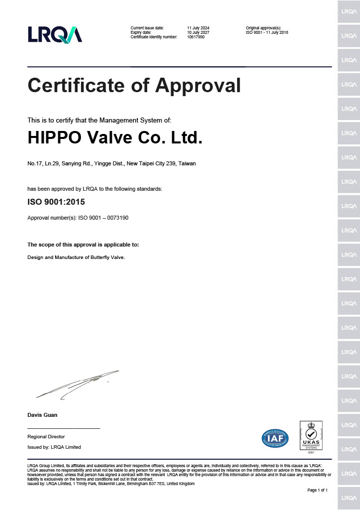 HIPPO Valve is proud of to be a certificed valve company. As a vendor, we are pleased to list down our major certification and are moving forward for more certifications. We are sincerely to be your very trusted vendor.